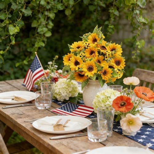AmyHomie Artificial Sunflower Bouquets,2 Bunches Fake Flowers for Outdoors Baby Shower Home Wedding Fall Decor, Bride Holding Flowers,DIY Garden Craft Art Decor
