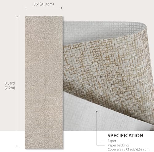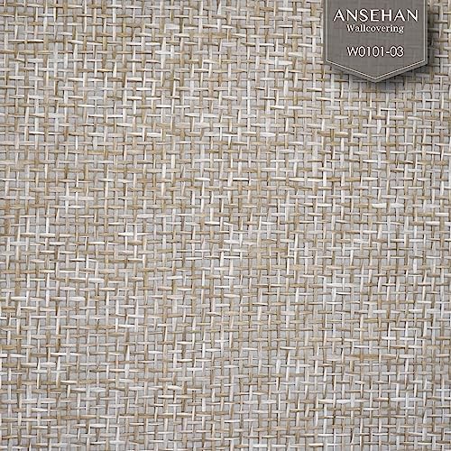 Ansehan Wallcovering W010103 Cosmo Collection 36″ W x 8 Yard L, Natural Paper Weave Grasscloth Modern Texture Wallcovering for Boho Living Room Bedroom Feature Wall,Khaki/Wheat/Grey