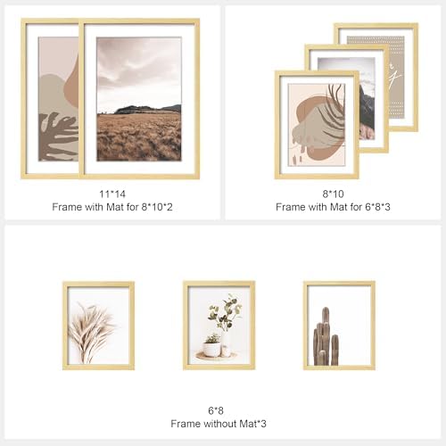【Mutiple Size】This gallery wall frame set includes 2 pcs 11″x14″ matted to 8″x10″, 4 pcs 8″x10″ with 3 matted to 6″x8″ & 1 without mat, and 2 pcs 6″x8″.