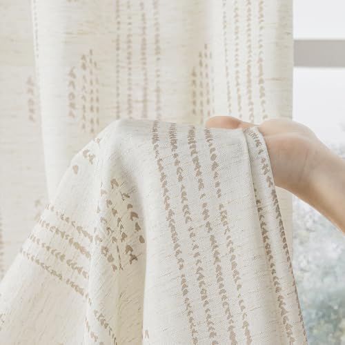 Boho Linen Curtains for Bedroom Living Room Taupe Farmhouse Boho Curtains 84 Inches Long Geometric Striped Patterned Mudcloth Grommet Top Light Filtering Window Drapes 2 Panels Taupe on Beige