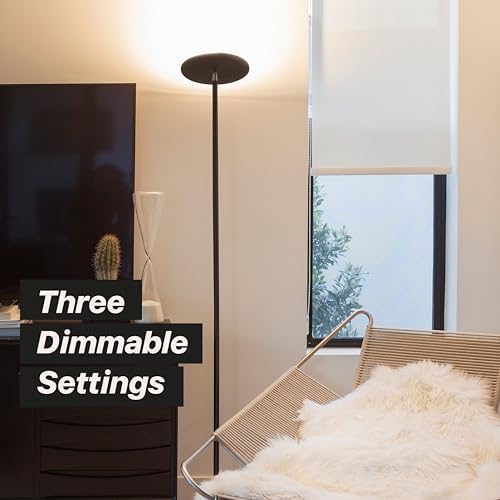 Standing Lamp with Dimming and 3 White Color Modes: This contemporary living room decor essential fits easily into corners, with a slim base that slides under couches for apartment decor and modern layouts. This dimmable torch lamp features three white color modes—3,000K warm lighting, 4,000K soft white, and 5,000K daylight white—allowing you to tailor ambient lighting and mood lighting to your space. Designed as a versatile torch lamp for bedroom, office, or living room decor, it adjusts easily with a single-touch control, while the rotating head lets you angle the light precisely where it’s needed.