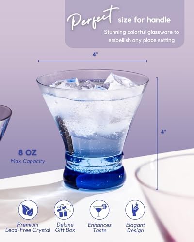 for HIM and HER: Easier to hold, put down, walk around without spilling! Fits comfortably in small hands and they were more manly and not a fu fu martini drinking glass. Unique design draws the flavors and aromas to the top. Perfect for lemon drop, gin, vintage martini, lolita martini, margarita, mixed cocktails of any kind. Strong enough for cosmopolitan cocktail bar glasses