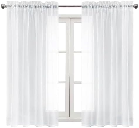 These curtains are made of 100% durable imported polyester and luxurious textured weave sheer fabric, your package includes 2 panels, each panel measures 52 x 54 inch length