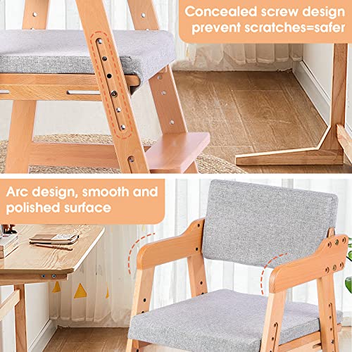 Ezebaby Wooden High Chair for Toddlers to Teens Adjustable Kids Learning Chair with Steps, Child Seats with Removable Cushion (Natural Color)