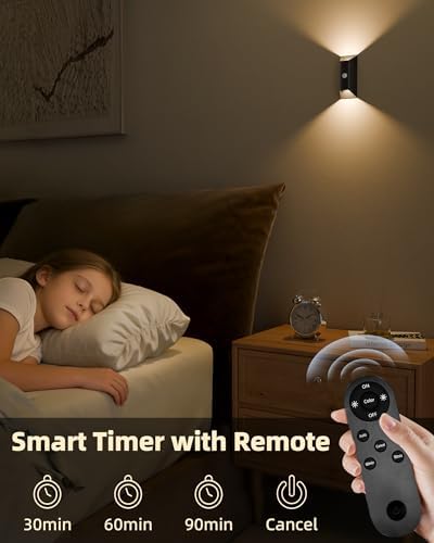 Remote Control & Smart Timer: Control every function from up to 16ft (5m) away, the wall lights for bedroom remember your last color and brightness setting. Also set auto-off timers (30/60/90 min). Enjoy complete bedside convenience without ever getting up.