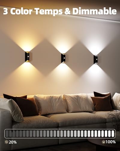 3 Color Temperatures + Stepless Dimming: The rechargeable wall lights easily switch between Warm White (3000K), Neutral White (4500K), and Cool White (6500K), and adjust brightness (20-100%) from a soft night glow to bright clarity—effortless control by remote.