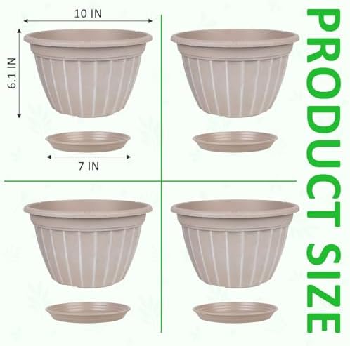 【Drainage Holes and tray】Each10 inch plant pots for plants features multiple drainage holes for effective water removal to protect plant roots from damage. This feature is vital for the well-being of your greenery, thereby keeping your plants healthy and thriving.