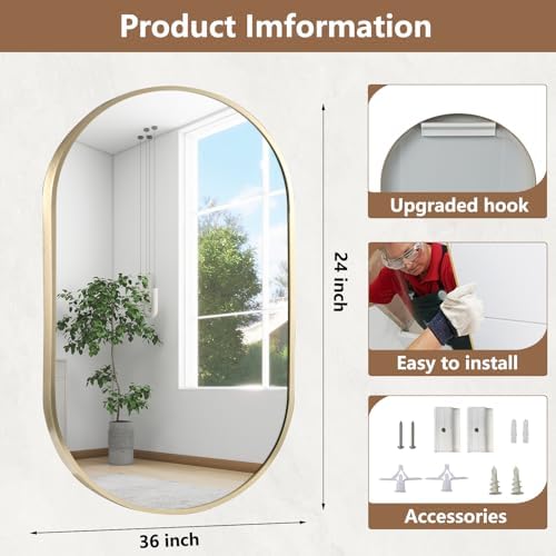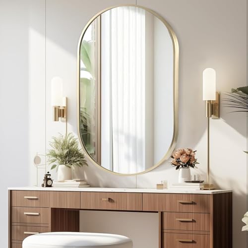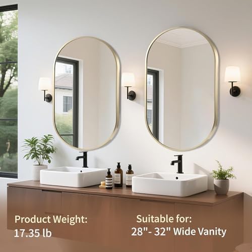 【Multiple Rules】This bathroom mirror offers two sizes (17″x30″,22″x30″,24″x36″,26″x38″,) and two colors (gold, black) to meet your different needs. The 17″x30″ wall mirror is suitable for smaller bathrooms, while the 26″x38″ mirror is suitable for spacious bathrooms. In addition to the bathroom, it is also suitable for various occasions, such as bedrooms, living rooms, and so on,this oval wall mirror can become the finishing touch for home decoration.