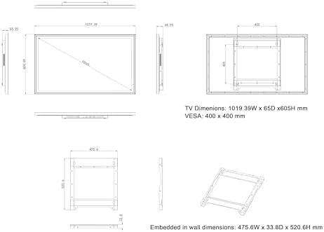 Designed for Easy Installation & Precise Fit – TV dimensions: 40.1” W × 23.8” H × 2.2” D. Standard VESA 400 × 400 mm mounting pattern ensures secure and straightforward installation.