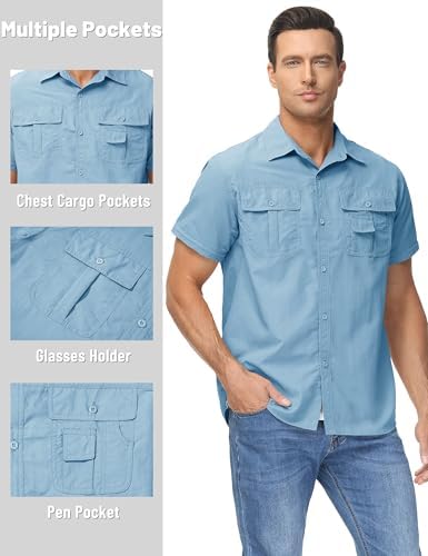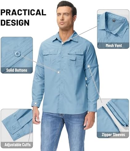 Convertible Zipper Sleeve Shirt&Function Pocket Design:This hiking shirt for men is equipped with multiple practical pockets,offering ample storage.The long sleeve shirts ferturing with zippers can convert long sleeves to short sleeves for hot days.