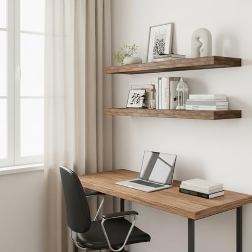 Sturdy and Easy to install: Includes all necessary hardware to make these floating shelves extremely easy to assemble. We also provide you with detailed install instructions for you to install the shelves in a few minutes.If you’re looking for an easy way to add some functional style to your room, It highly recommend definitely recommend giving these a try!