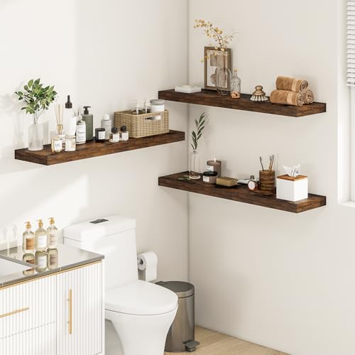 Engineered Wood & Wall Mounted Design – Slight color differences may occur due to lighting and screen settings.Our MDF bathroom floating shelves for wall are made of wood which grows naturally, so each piece of the board has unique natural wood grain and color. Through the simplest charcoal roasting process, we restore the carbonized color and texture of the wood itself. It highly recommend them for anyone looking to add functional and stylish storage to their bathroom space.