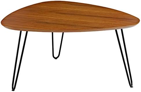 Instantly update your living room with our chic coffee table. The hairpin legs add the perfect amount of edge to a simple, mid century style piece. Made of high-grade MDF and a beautiful, durable walnut veneer, it’s a table that is sure to bring any room together in design. The stylish, guitar pick shaped table top makes for a perfect place to put a beautiful arrangement of flowers and candles on. Pair with our matching side table to better suit your needs.